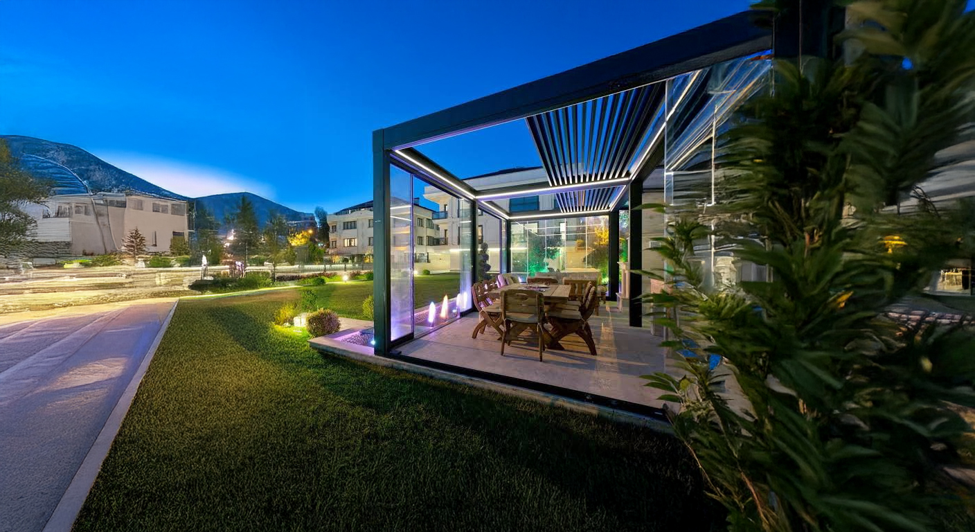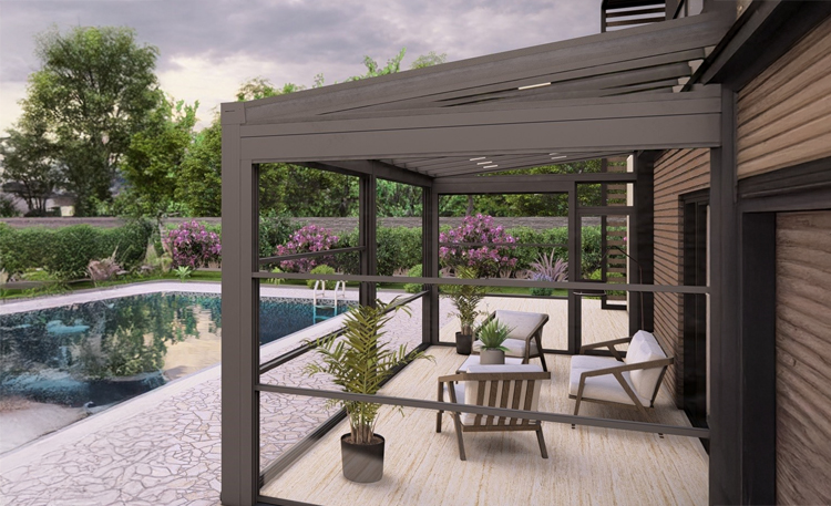 Bioklimatik sistemler, tavan panellerinin açılıp kapanabilmesi sayesinde güneş ışığı ve hava sirkülasyonunu kontrol eder, dış alanları konforlu hale getirir.